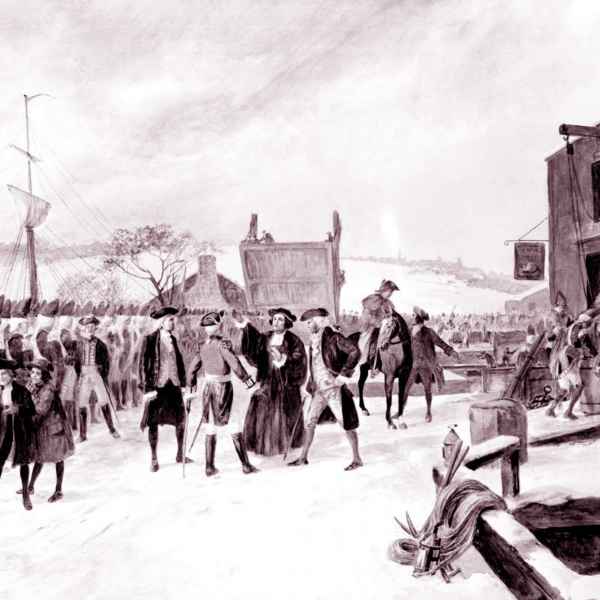Beginning with protests over the Stamp Act in 1765, the colonists in thirteen North American colonies reconsidered their relationship with the British Empire. This rupture deepened until in 1775 war broke out, lasting until 1783 and the creation of The United States of America. Salem was a key location in the early days of the Revolution. The British military governor of Massachusetts, General Thomas Gage, moved the state General Court to Salem in June 1774. The Massachusetts Provincial Congress, an illegal assembly, began in Salem on October 5, 1774, in defiance of Gage’s authority. A confrontation between Col. Alexander Leslie and the people of Salem at the North Bridge on February 26, 1775, two months before the battles of Lexington and Concord almost erupted into war, but a compromise was reached in an event today called “Leslie’s Retreat”. It was a Salem captain, John Derby, who first brought news of the war to England on an official mission from the rebelling forces. Many Salem mariners transformed their ships into privateers, capturing British ships as prizes and establishing Salem as the premier port of the new nation. Not every Salemite was in favor of the revolution, and many who remained loyal to the crown had their windows smashed by crowds in 1777. Many left the town for England, Nova Scotia, or other parts of the empire.