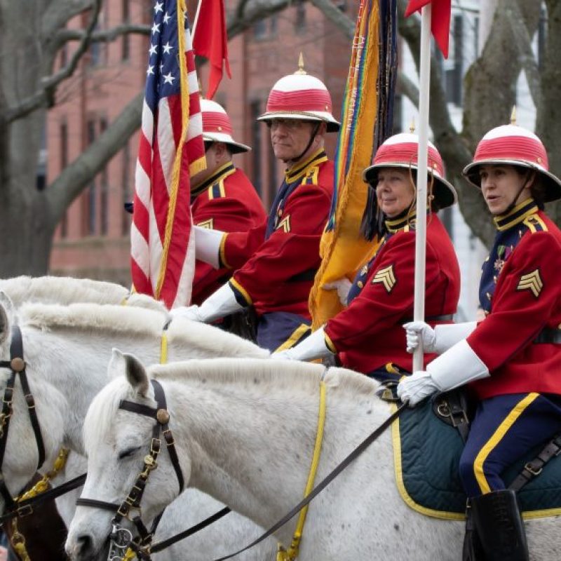 The early settlers of Salem established a militia to combat the Indigenous people of New England, further seizing their lands and defending against feared reprisals. Three regiments, composed of all the able men in the colony, were divided geographically. In 1637, as conflict raged with the Pequot people in southern New England, the East Regiment from Salem and surrounding towns mustered and drilled on the training ground, which today we call Salem Common. This event is considered the birth of the American National Guard.