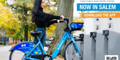 Bluebikes Salem is an extension of Metro Boston’s public bike share system. Download the Bluebikes app to easily purchase a monthly membership for $29 or single pass for a 30-minute trips for $4.00.